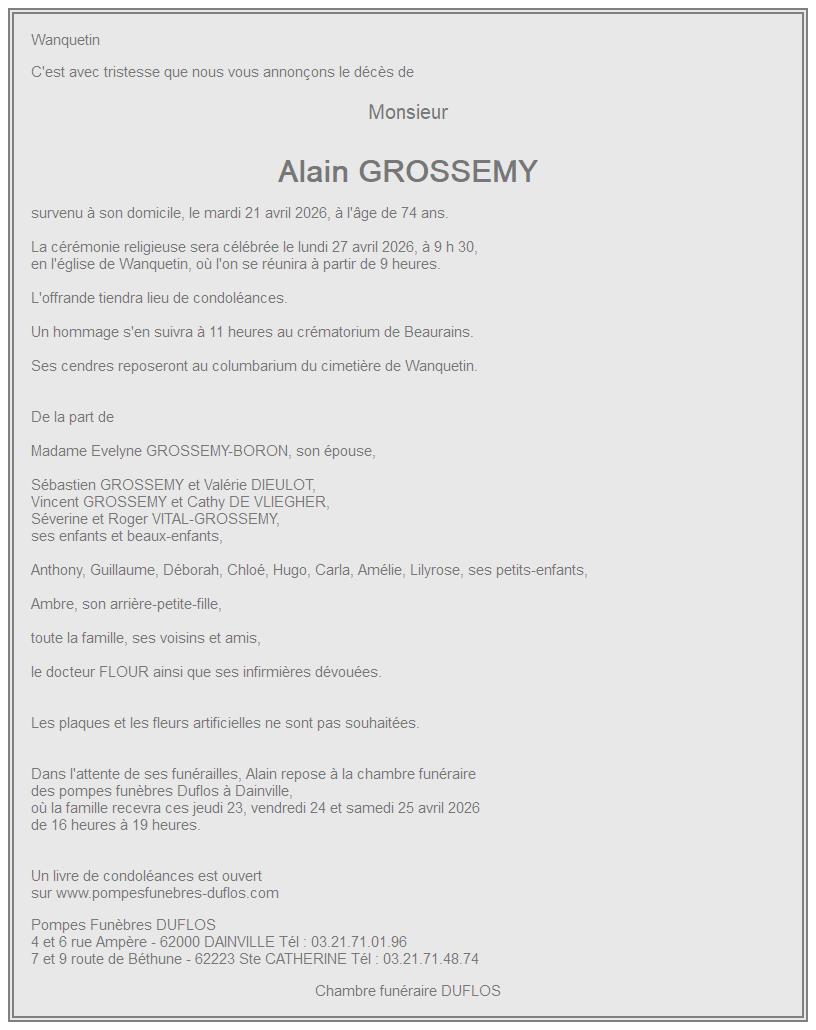cimetière de Wanquetin le lundi 27 avril à 16 heures 30