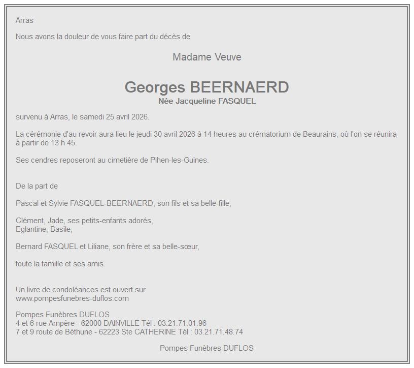 Veuve de Monsieur Georges BEERNAERD